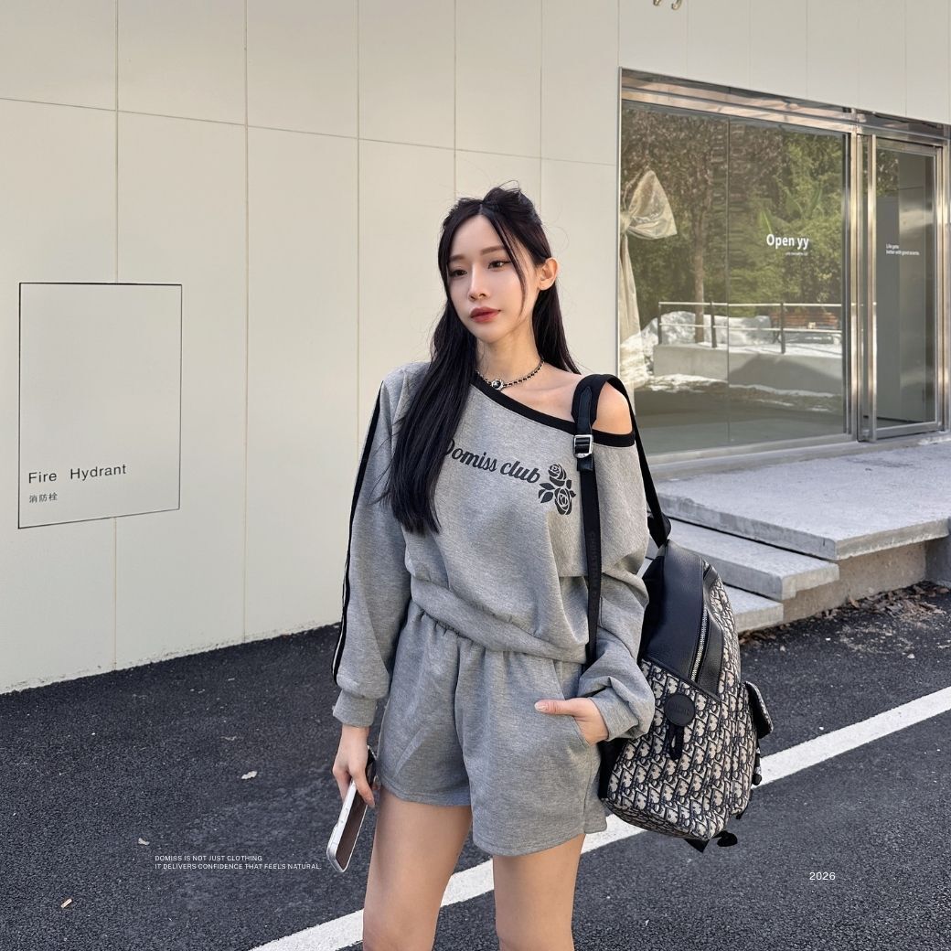 落肩 Oversize 的慵懶感,加上胸前玫瑰印花的細節