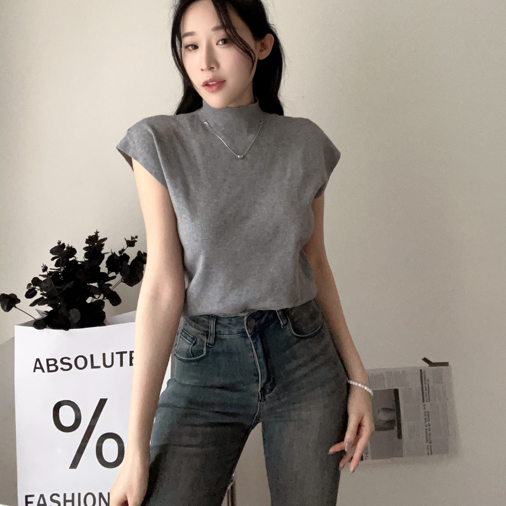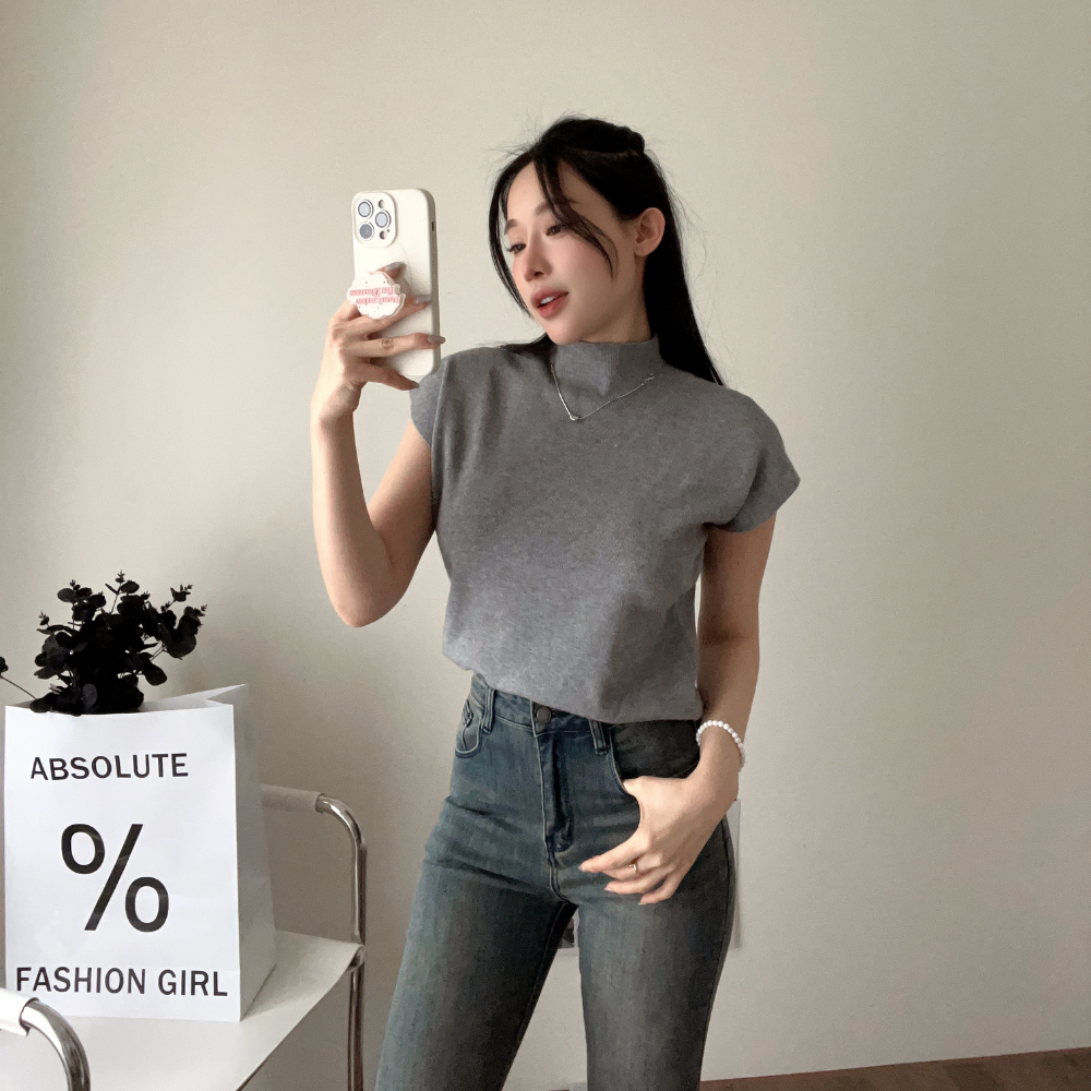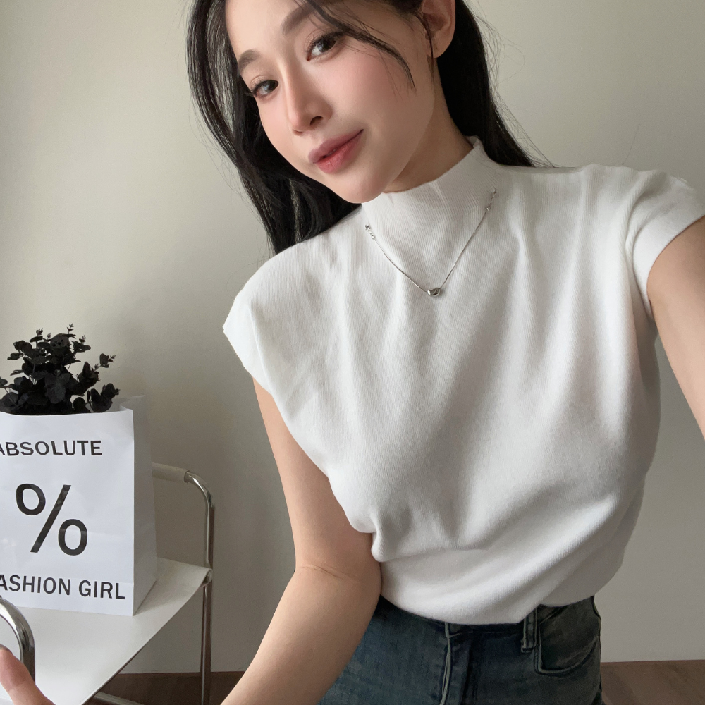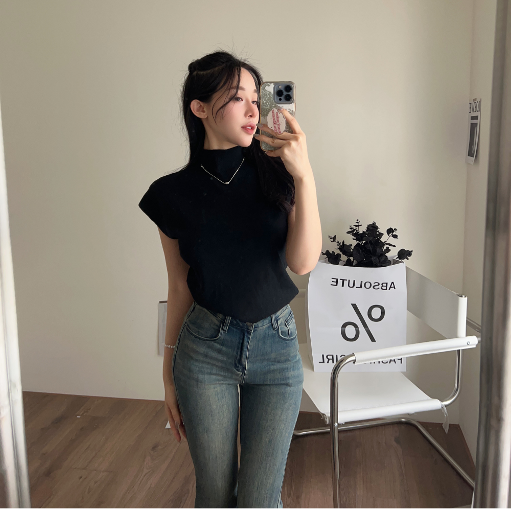 <尺寸> 衣長53 肩寬40 袖長6 cm