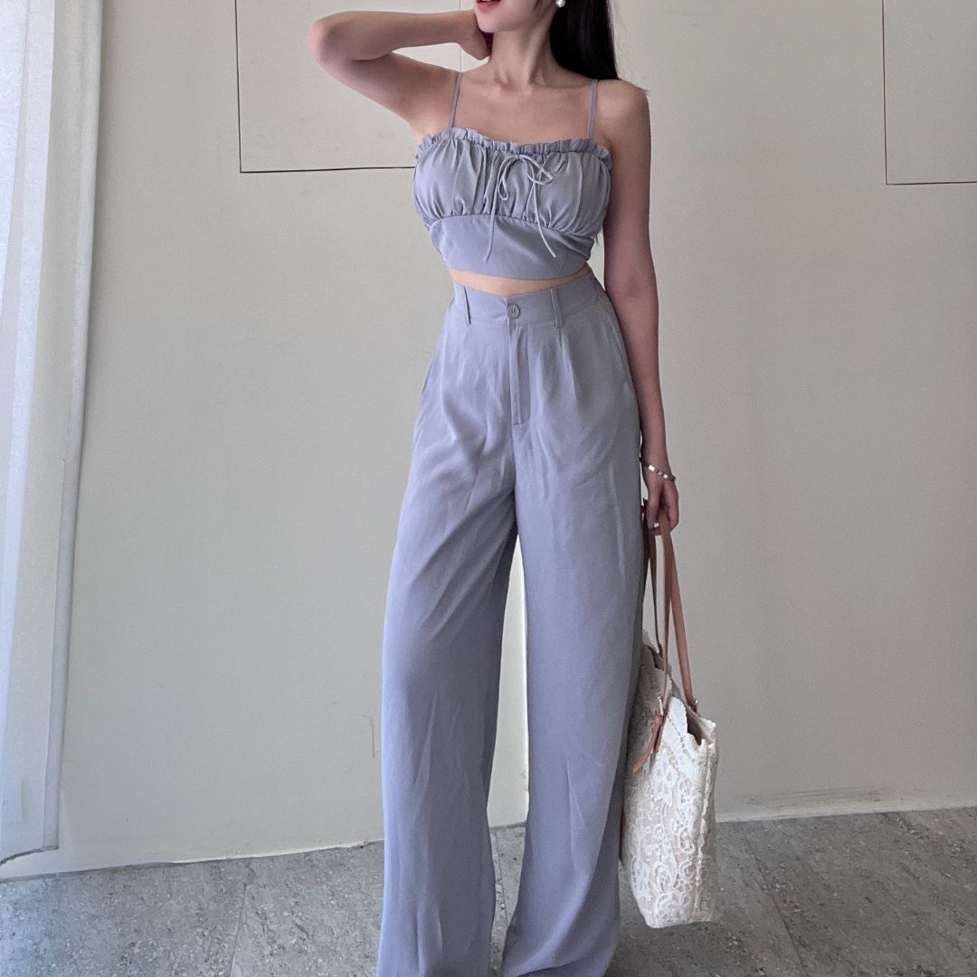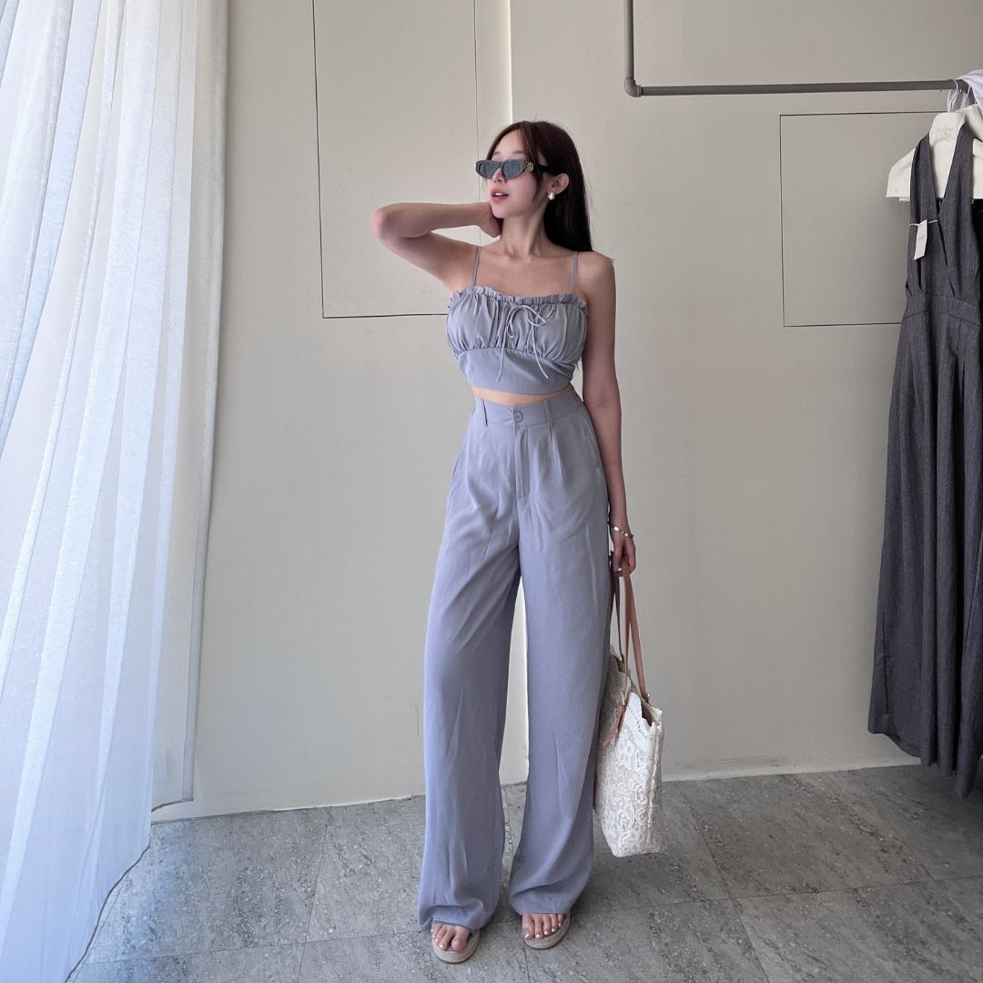 ☁️ 高腰直筒西裝褲+側開衩設計,走動時自帶高級氛圍