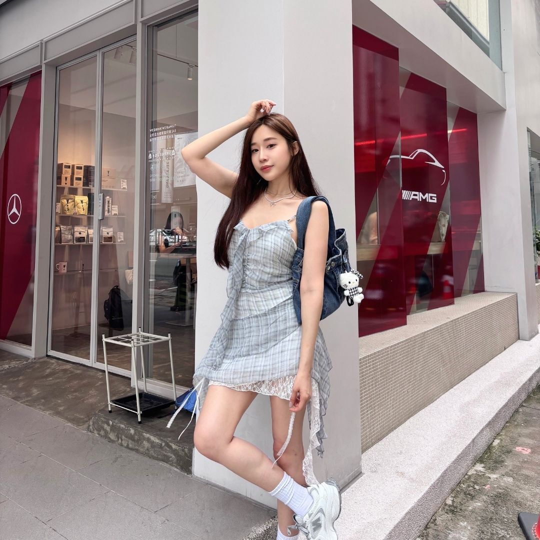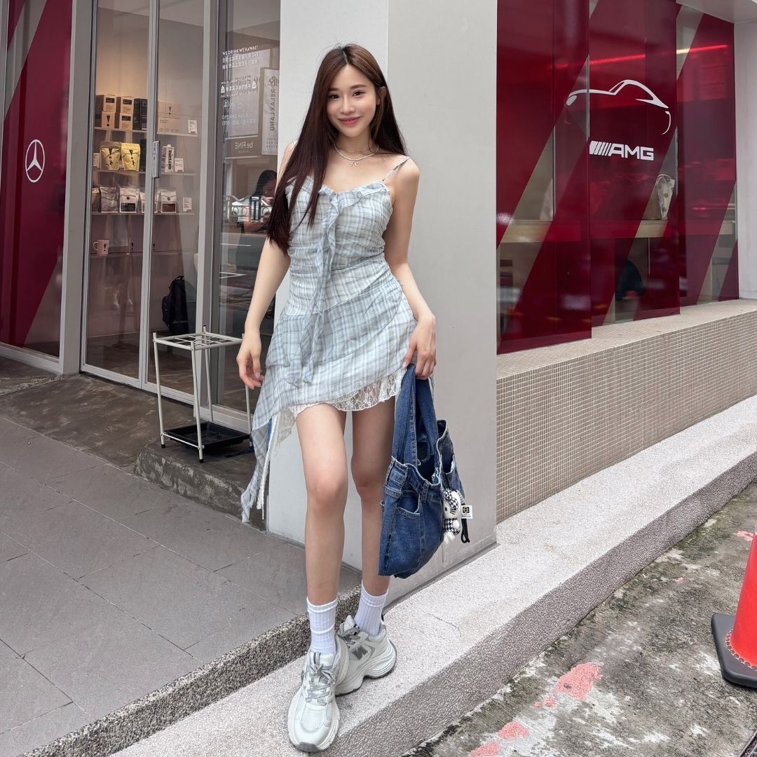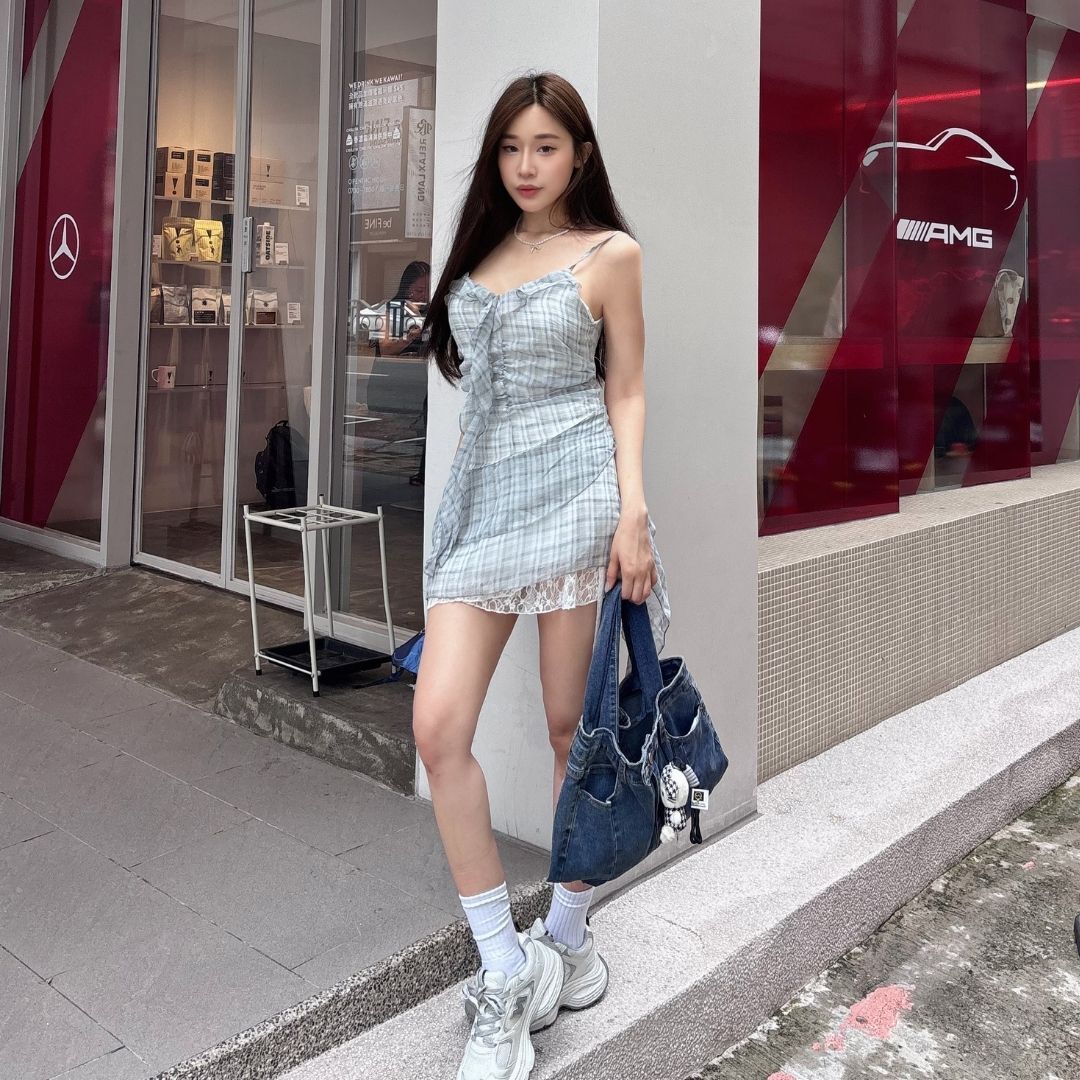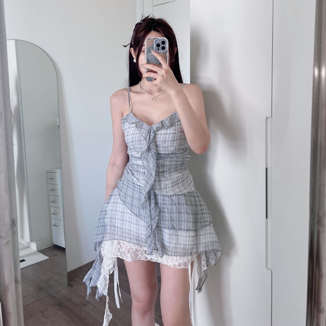 ⁃ 格紋 × 荷葉邊 × 蕾絲垂墜裙襬