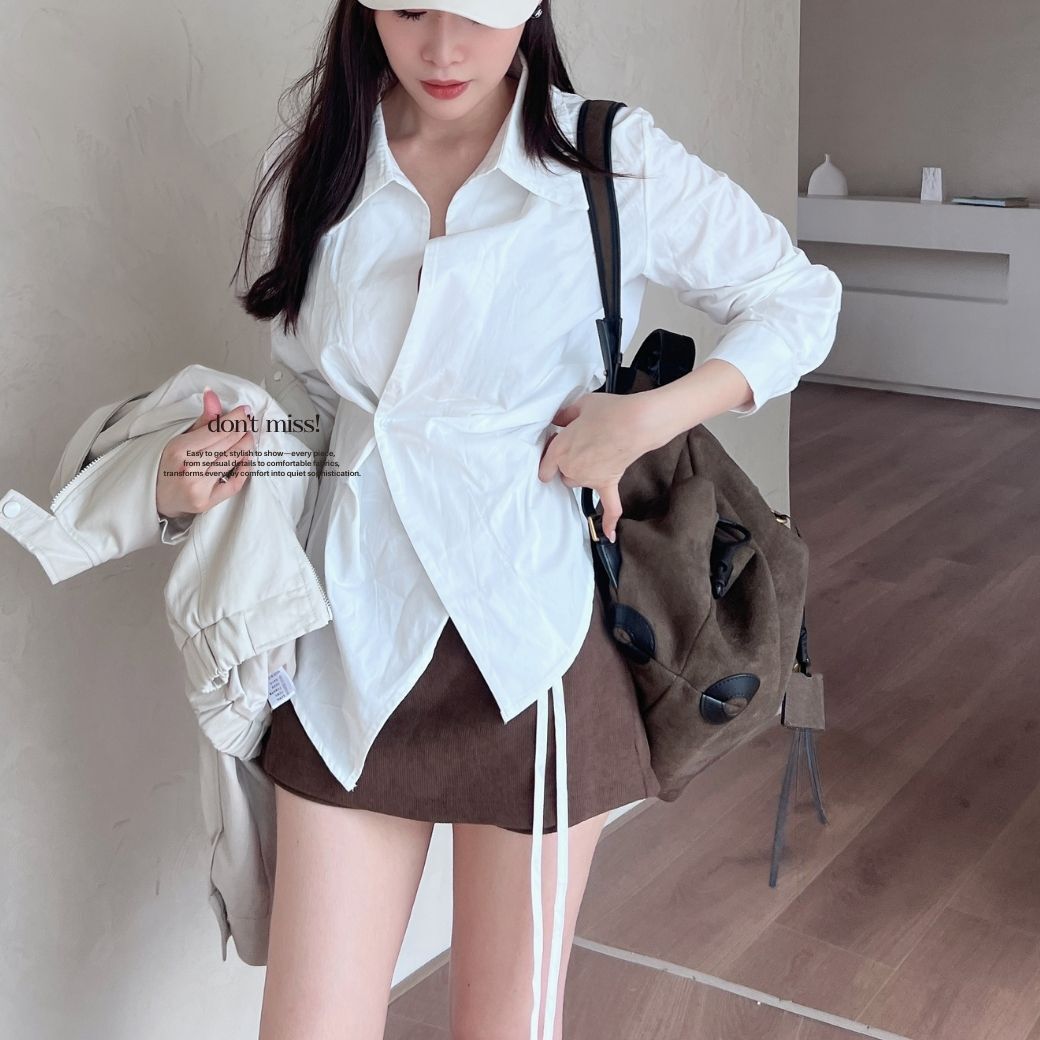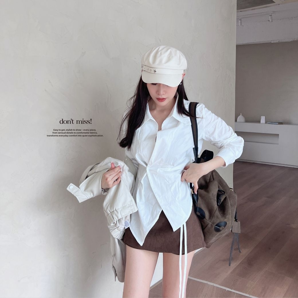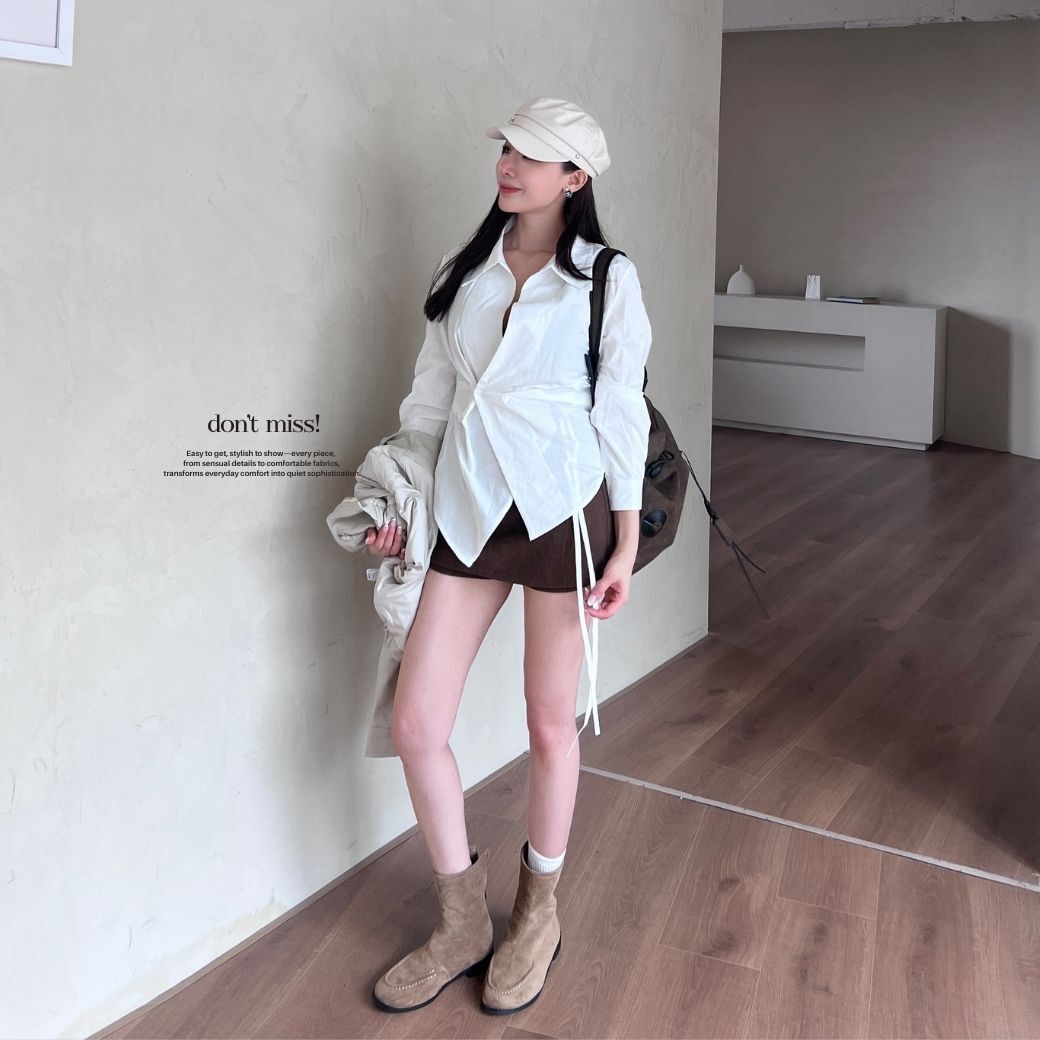 不規則壓褶剪裁 X 收腰設計,輕鬆拉出高腰比例