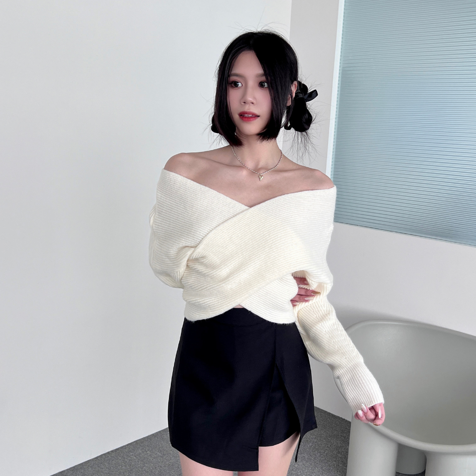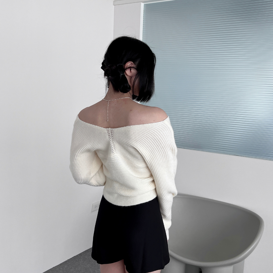 柔軟兔絨材質,交叉露肩小心機