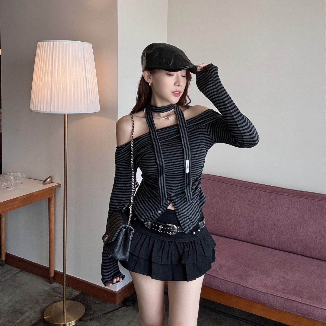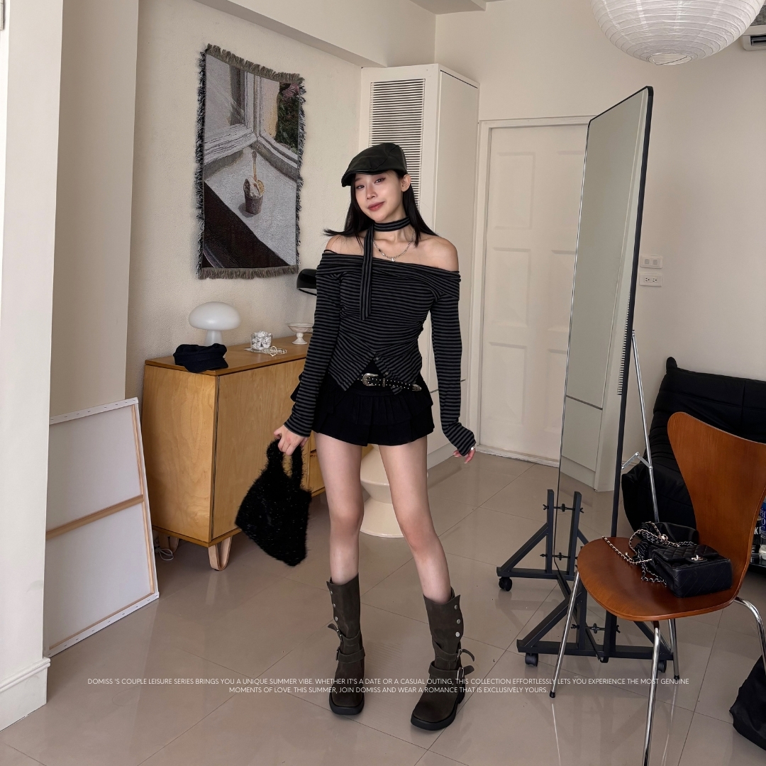 ✔ 一字領設計 → 性感鎖骨全露,瞬間拉長頸部線條