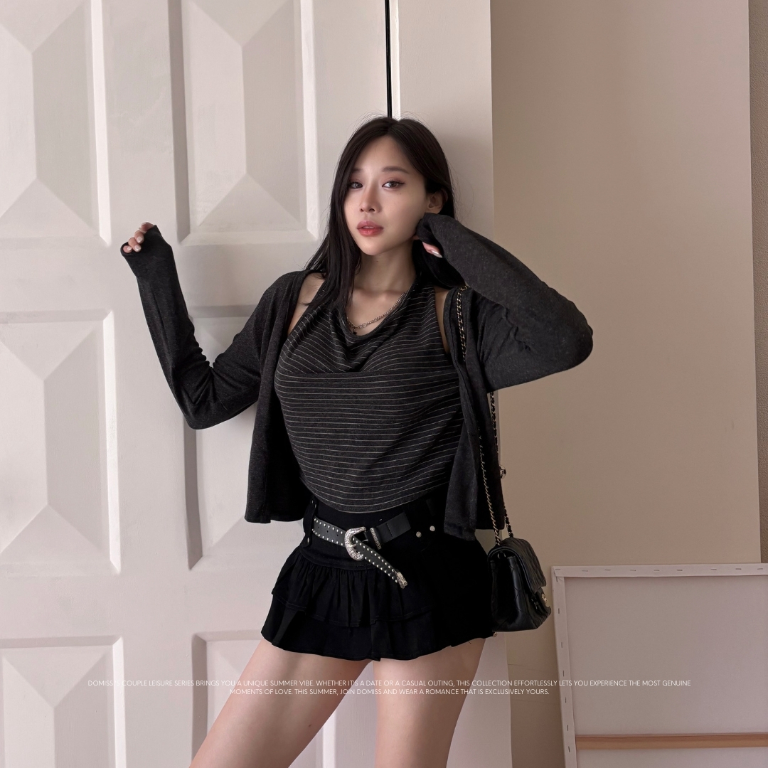 掛脖+背心設計,隨性就能穿出韓妞辣甜氛圍。